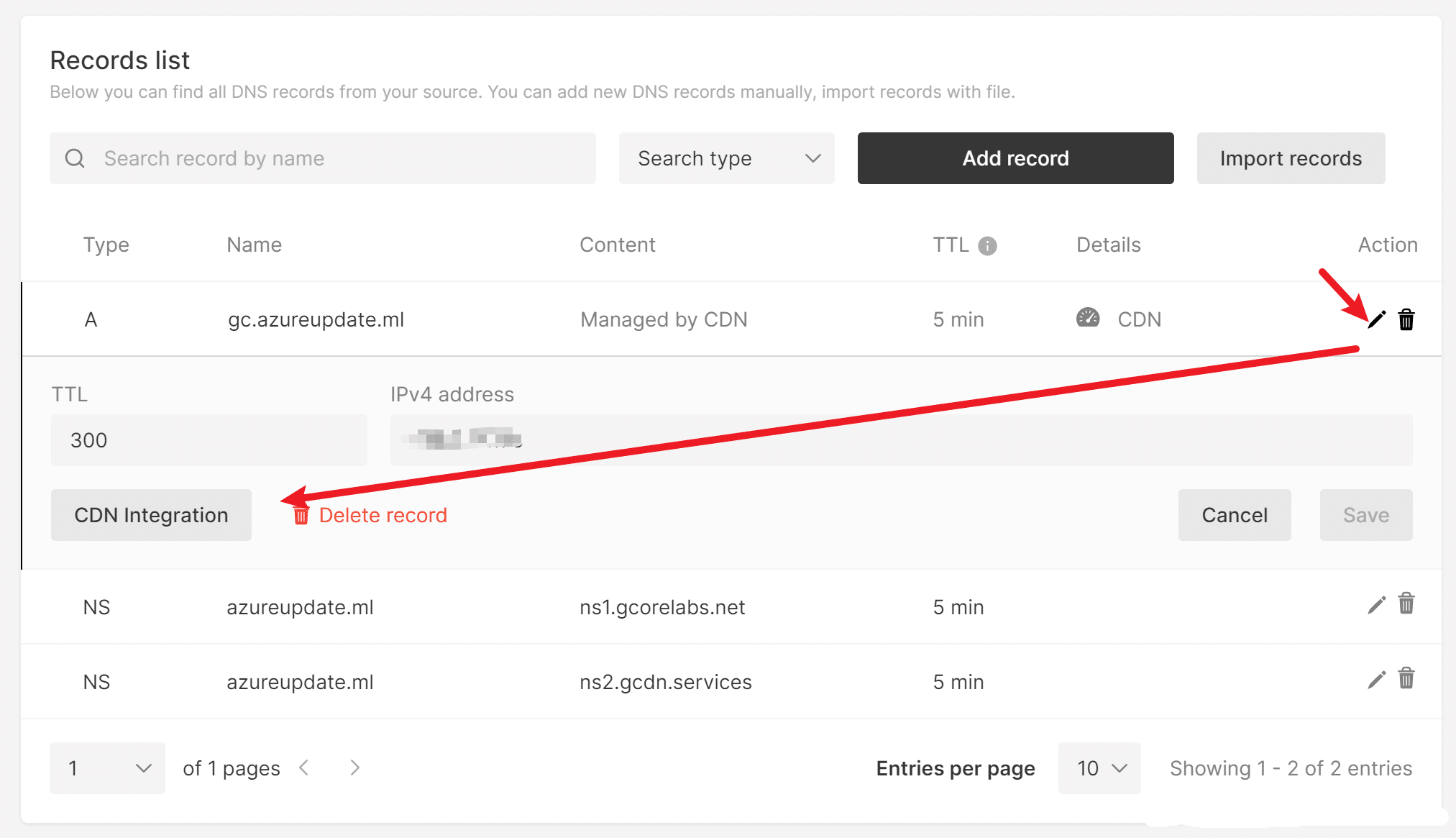 - 转到DNS页面,点击刚刚添加的域名